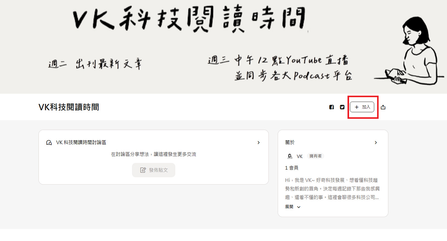 要再麻煩各位讀者,花兩分鐘的時間,在方格子《VK科技閱讀時間》專欄,按一下「加入」(右上),會跳轉到「註冊/登入」的頁面,完成後,才會收到未來的更新內容喔,非常感謝!
